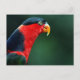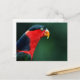 Una postal con el cierre de un pájaro colorido sobre un fondo borroso.
