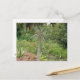 Tarjeta postal que muestra la fotografía a todo color de una palma de Madagascar o de una paquipodiom. A continuación se pueden ver varios cactus.