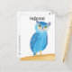 El búho abstracto azul y púrpura se imprime en postales personalizados. El texto encima del búho dice, ¡Hellooo! El búho tiene un cuerpo azul claro y plumas moradas y azules, y orejas moradas. Esto seguramente traerá algunas sonrisas. Gracias por comprar en CherylsArt en Zazzle.