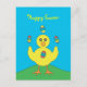 La postal de la chica malabarista de huevos de Pascua es una tarjeta divertida y adorable que se envía a la familia y amigos. Esta encantadora tarjeta de felicitación de Pascua tiene un polluelo haciendo malabares con huevos de Pascua coloridos.