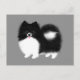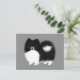 Pomerania blanca y negra adorable. Cuta tarjeta postal de perro de dibujos animados.