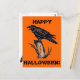 Este diseño de postales de Halloween Raven con arte negro sobre naranja es muy llamativo, y está fechado en la rama que se puede cambiar. Este área se puede personalizar con las iniciales. La obra de arte es mi original lápiz con derechos de autor y dibujo de tinta de "Inky", un cuervo real.