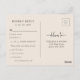 Simplifique su proceso RSVP con nuestra tarjeta postal Sage Green Boho Wildflowers RSVP. Este encantador diseño cuenta con delicadas acuarelas y flores silvestres en tonos tierra de terracota, óxido, morado y azul, en un entorno verde de sabores serenos. Con un formato de postal, sus huéspedes pueden responder fácilmente sin necesidad de un sobre, ofreciendo elegancia y comodidad. Diseñada a la perfección para adaptarse a su suite boda, esta postal RSVP garantiza cada detalle que refleja la belleza y el romanticismo de su día especial. ¡Deja que tus huéspedes respondan con facilidad y estilo!