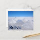 Postal de pilas secas de sal con reflexión en el agua esperando la cosecha en el Salar de las salinas Uyuni en el sur de Bolivia con el texto: 'Bolivia'.