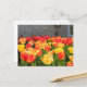 Esta es una foto de tulipanes rojos y amarillos en los jardines Hershey en postales.