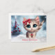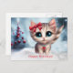 Una tarjeta postal de Happy Holidays con un gato de ojos grandes y un árbol de Navidad. ¡Una manera divertida de difundir saludos de vacaciones!