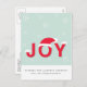 Postal vacacional moderna con copos de nieve, sombrero de Santa y caligrafía moderna en rojo, menta y blanco. Esta tarjeta está disponible en una variedad de productos.