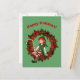 Un elfo chica lindo sentado en una corona de poinsettia sosteniendo una postal de vacaciones con Navidades de caña de caramelo. Puede cambiar o eliminar el saludo de la plantilla. Haga clic en personalizar para agregar texto a la parte posterior de la tarjeta. Por favor visite mi galería para ver más Navidades y tarjetas de Navidad y regalos. ¡Gracias por pasarse por Smilin' Eyes Treasures!