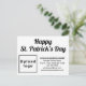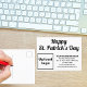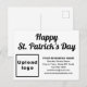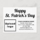 Postal de vacaciones White St. Patrick que puedes personalizar subiendo tu logotipo de negocio, escribiendo tu nombre de negocio, dirección, número de teléfono, correo electrónico y página web o social media. Personalizar y dáselo a tus clientes o clientes para que les saluden este Día de San Patricio. Una postal de vacaciones para promocionar su negocio o su marca. Una postal de vacaciones de personalizable que puede incluir en sus materiales de marketing para crear conciencia de marca. Compruebe la apariencia después de cargar el logotipo y escribir textos. Si la apariencia le resulta agradable, puede realizar su pedido ahora. Si necesita cambiar el tamaño y la posición del logotipo y los textos para que encajen en esta postal de vacaciones, por favor, ajuste en la herramienta de diseño. También puede cambiar el color de fondo, el color de fuente y el estilo de fuente en la herramienta de diseño. ¡Feliz Día de San Patricio! Le deseamos la mejor de las suertes, alegría y más ventas de esta fiesta.