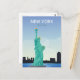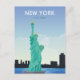 Ilustracion de afiches de viajes Retro New York, NY que ofrece vistas a la Estatua de la Libertad en Ellis Island. Este diseño vintage traerá recuerdos de afiches clásicos de viajes de una época pasada.