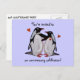 Ilustración gráfica de una pareja de pingüinos divertidos. Personalice este diseño con sus nombres o mensaje especial.