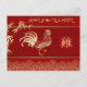 Feliz Año Nuevo Chino. Elegante diseño de Relieve metalizado dorado rojo festivo, tarjetas postales del Año Chino de los gallos. El personaje chino frente a la tarjeta es un Rótulo gallo en el Zodiaco chino. Tarjetas coincidentes, sobres rojos tradicionales chinos y regalos disponibles en la categoría Año Nuevo chino / Año del gallo de nuestra tienda.