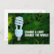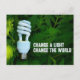 Postales del Día de la Tierra con una lámpara fluorescente compacta y la frase "Cambia una luz, cambia el mundo". ¡Comparte tu mensaje para proteger la Tierra con nuestro Think Green todas las tarjetas postales y tarjetas de felicitación!