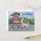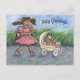 Palabra en la nota de la tarjeta "Kitty Greetings" (Saludos a Kitty) pero se puede cambiar para hacer su propio mensaje de tarjeta de felicitación personalizado. El arte muestra a una niña pequeña de color rosa empujando un coche de bebé con dos gatos. ¡Haz tus propios regalos de amante de los gatos personalizados con mensajes personalizados!