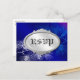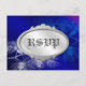 Postales editables de RSVP con letras de guión elegantes y arte vintage de una masa de pino en conos de pino azul y blanco dentro de un marco plateado sobre un fondo azul. Haga clic en Personalizar para agregar su nombre o mensaje, e incluso guarde el diseño para más adelante.