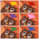 El orgulloso alumno lleva un gorro de graduación y un certificado de terminación bajo el ala. La lechuza marrón es felicitada por un profesor quemado de plumas de naranja. Ilustracion original del artista Noël Snow.