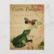Impresión de arte vintage impresionante, postal retro francesa con rana y mariposa sobre fondo floral marrón.