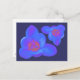 Esta postal muestra una foto de una flor de croco que ha sido alterada digitalmente añadiendo un filtro para producir algunos colores brillantes y hermosos. En el centro, el azul y el violeta de los pétalos exteriores y los tonos rojos y naranjas. El resultado es una flor fresca con un interior ardiente y cálido.