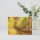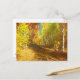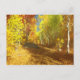 Un camino sobrepoblado serpentea por el bosque de abedules en un día soleado de otoño. Los troncos blancos y negros de los árboles contrastan con las hojas y el césped en todos los tonos de oro, desde el amarillo pálido hasta el naranja profundo, iluminados por los rayos solares que recorren las ramas.
