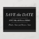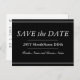 En la parte delantera de este lujoso y elegante diseño de postal de última generación se incluye el mensaje "SAVE the DATE", junto con nombres editables y una fecha. Postales como esta podrían ser usadas para notificar a potenciales invitados de una próxima celebración de bodas o de algún otro evento.