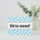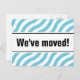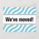 Postales móviles modernas con líneas de onda azules. Personalizado mover texto; ¡Nos hemos movido! Añade tu nueva dirección en la parte posterior. Nuevas tarjetas de casa para el hogar y el negocio. Gran idea para los restaurantes en movimiento.