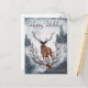 Postales de feriado para Navidades de invierno de acuarela gris. El diseño presenta una escena de nevadas de color gris acuático en invierno de árboles de Navidad, montañas, ciervos con bayas huecas. Elegante textura suave de fondo. Para una mayor personalización, no dudes en contactarme en kbasandra@gmail.com.