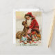 Restaurado a principios del siglo XX postal vintage de Navidad con un niño vestido como Santa. El texto dice "Una Feliz Navidad".