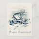 Vintage ilustracion de postales navideños de un camino, probablemente usado por vagones tirados por caballos, en la nieve que lleva a un hogar cubierto de nieve en el país. El humo se nubla desde la chimenea de la casa y los árboles cubiertos de nieve están en el fondo