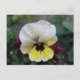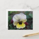 Esta postal floral de bonito muestra una fotografía detallada de una flor de color blanco y amarillo con un centro negro.