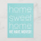 ¿Te mudaste a un nuevo hogar? Hágalo conocer a amigos y familiares con esta tipografía simple y elegante, la postales de Invitación en movimiento Hogar Dulce en turquesa. Fácil de personalizar, simplemente agregue sus detalles en los campos de texto proporcionados. Haga clic en "Personalizar" para encontrar más opciones de personalización.