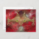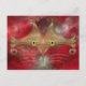 Una cara de gato estilizado hecha de curvas y curvas doradas brillantes, con ojos de oro verde ancho, contra un fondo fractal rojo.