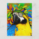Fotografía original de oro y azul Macaw reelaborada en arte digital, con coloridas manchas de pintura y plumas alrededor del loro, como en una pintura fantasía, pintura exótica.