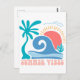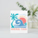 Comparte la calidez del verano con esta encantadora postal de estilo retro. Con una escena de playa nostálgica, con una palmera balanceándose en la brisa, suaves olas deslizándose hacia la orilla y un sol brillante sobre la cabeza, esta postal captura el espíritu despreocupado de la vida costera. Perfecto para enviar saludos soleados a amigos y familiares o para quedarse como una pequeña obra de arte para alegrar tu espacio con vibraciones de playa.