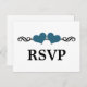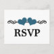 Postal de respuesta Boda de Corazones Elegantes, dulce y caprichoso, con un elegante borde giratorio adornado con un par de corazones azules reales. Esta tarjeta postal RSVP es la elección perfecta para una moda y una boda elegante. Fácil de personalizar, simplemente agregue los detalles de su boda en los campos de texto proporcionados. Haga clic en "Personalizar" para buscar opciones de personalización adicionales.
