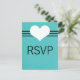 Postal RSVP de la dulce y encantadora Boda del Corazón Moderno con un fondo turquesa y un bonito corazón y un borde a rayas. Esta postal sencilla pero audaz es perfecta para un boda muy moderno y contemporáneo. Fácil de personalizar, simplemente añada los detalles de su boda para hacer de este diseño su propio! Haga clic en "Personalizar" para encontrar opciones de personalización adicionales.