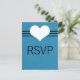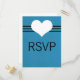 Postal RSVP de la dulce y encantadora Boda del Corazón Moderna con un fondo azul y un corazón lindo y un borde rayado. Esta postal sencilla pero audaz es perfecta para un boda muy moderno y contemporáneo. Fácil de personalizar, simplemente añada los detalles de su boda para hacer de este diseño su propio! Haga clic en "Personalizar" para encontrar opciones de personalización adicionales.