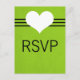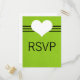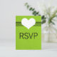 Postal RSVP de la dulce y encantadora Boda del Corazón Moderno con fondo verde de chartreuse y un bonito corazón y un borde a rayas. Esta postal sencilla pero audaz es perfecta para un boda muy moderno y contemporáneo. Fácil de personalizar, simplemente añada los detalles de su boda para hacer de este diseño su propio! Haga clic en "Personalizar" para encontrar opciones de personalización adicionales.