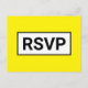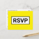 Este diseño sencillo y mínimo de tarjeta postal RSVP incluye el mensaje "RSVP" en la parte delantera. También incluye un formulario RSVP de personalizable en la parte posterior para que el destinatario lo complete, junto con una dirección de personalizable a la que se enviarán por correo las tarjetas RSVP completadas. Tarjetas RSVP como esta podrían ser usadas para averiguar quién asistirá a un fiesta de Navidades, una ducha de matrimonio, una fiesta de cumpleaños, una ducha de bebé o alguna otra celebración.