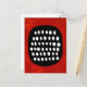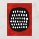 Una forma negra audaz con ovalos blancos separados de manera uniforme se coloca sobre un fondo rojo vibrante. La sencillez y el contraste crean un efecto visual sorprendente.