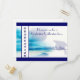 Invitación postales de graduación con un diseño único con gorras de graduación y acentos azules, listos para su personalizar con su nombre e información de ubicación de fiesta!