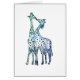 Besos de jirafas africanas, dibujo romántico de arte. Bonito dibujo africano azul y verde sobre una postal.