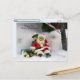Foto de un Papá Noel coleccionable que ha caído mientras trataba de patinar con un muchacho ayudándole. En la parte trasera hay una caja para tu ID de postal de Posttravesía o cualquier otra cosa que te interese escribir allí. El texto se actualiza fácilmente.