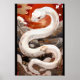 「幸運の白蛇」は、2025年の干支「巳年」にちなんで制作された作品です。 神秘的で威厳のある白蛇が、金箔を思わせる背景と調和し、幸運や繁栄を象徴する存在として描かれています。 赤い日の出、波模様、桜の花びらがデザインに動きと華やかさを与え、白蛇の鱗には光沢感と立体感が表現されています。白蛇は古来より幸運や守護の象徴とされ、この作品は新年の贈り物やインテリアアートとして最適です。サイズは33cm × 48.3cmの大判で、黒淵を取り入れたデザインが作品全体の深みを引き立てます。