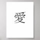 愛, love in Japanese. Typography in black and (transparent) white. You can change the background color.