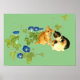 Póster 朝顔子猫図 Morning glory and kitten