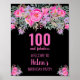 Elegante diseño para una fiesta de cumpleaños número 100 con un rosa "100 y fabuloso" y un nombre escrito adornado con flores de acuarela femeninas sobre un fondo blanco. edad, texto, nombre y color de fondo del personalizar.