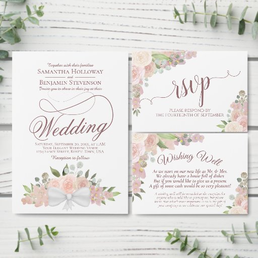 Pink Watercolor Floral Rustic Spring Wedding SuiteDiseñado por Cat Ritchie