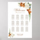 Ayude a sus huéspedes a encontrar su mesa con esta tabla de asientos naranja quemada y boda floral de rosa blanca. Tiene capacidad para 12 mesas y 120 personas.
