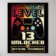 Póster 13.ª Regalo de cumpleaños Niños Nivel 13 Funcionar