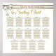 Haz que tu recepción de bodas sea hermosa con esta tabla de asientos. Presenta un diseño sencillo pero elegante con texto dorado sobre un fondo blanco con una cinta blanca y un arco con guarnecido dorado. Esta gráfica tradicional muestra la asignación de mesas para 140 personas con 10 asientos por mesa, por lo que los huéspedes tendrán la oportunidad de encontrar la mesa correcta.